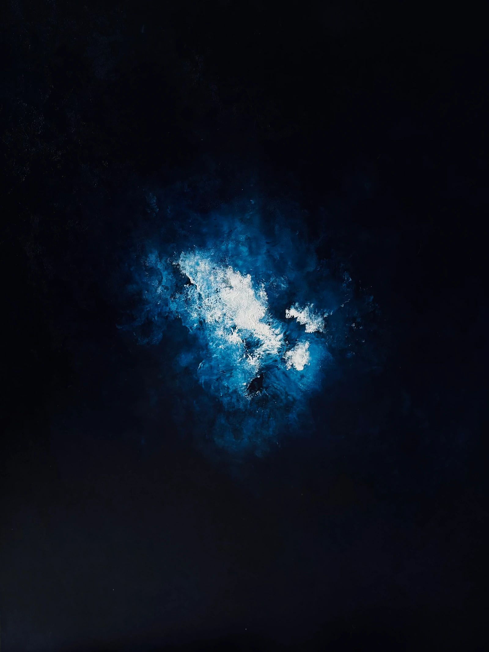 Je suis née à Paris en 1995 et je vis et travaille entre Nantes, Paris et la presqu’île de Crozon, où mes souvenirs continuent de résonner. Autodidacte, j’ai grandi dans un environnement artistique marqué par la pratique de ma mère, artiste peintre. Mon travail s’ancre dans la relation intime que j’entretiens avec l’océan et avec Crozon, que j’utilise comme matière première pour interroger la mémoire. Je développe une écriture picturale centrée sur le geste direct, à la main, sur une palette resserrée autour du bleu, couleur que j’explore comme vecteur de profondeur, de trace et de rémanence. Mes séries questionnent à la fois le lieu, le corps et ce qui se dépose entre les deux : la mémoire comme phénomène, l’écume comme cicatrice, le bleu comme territoire.