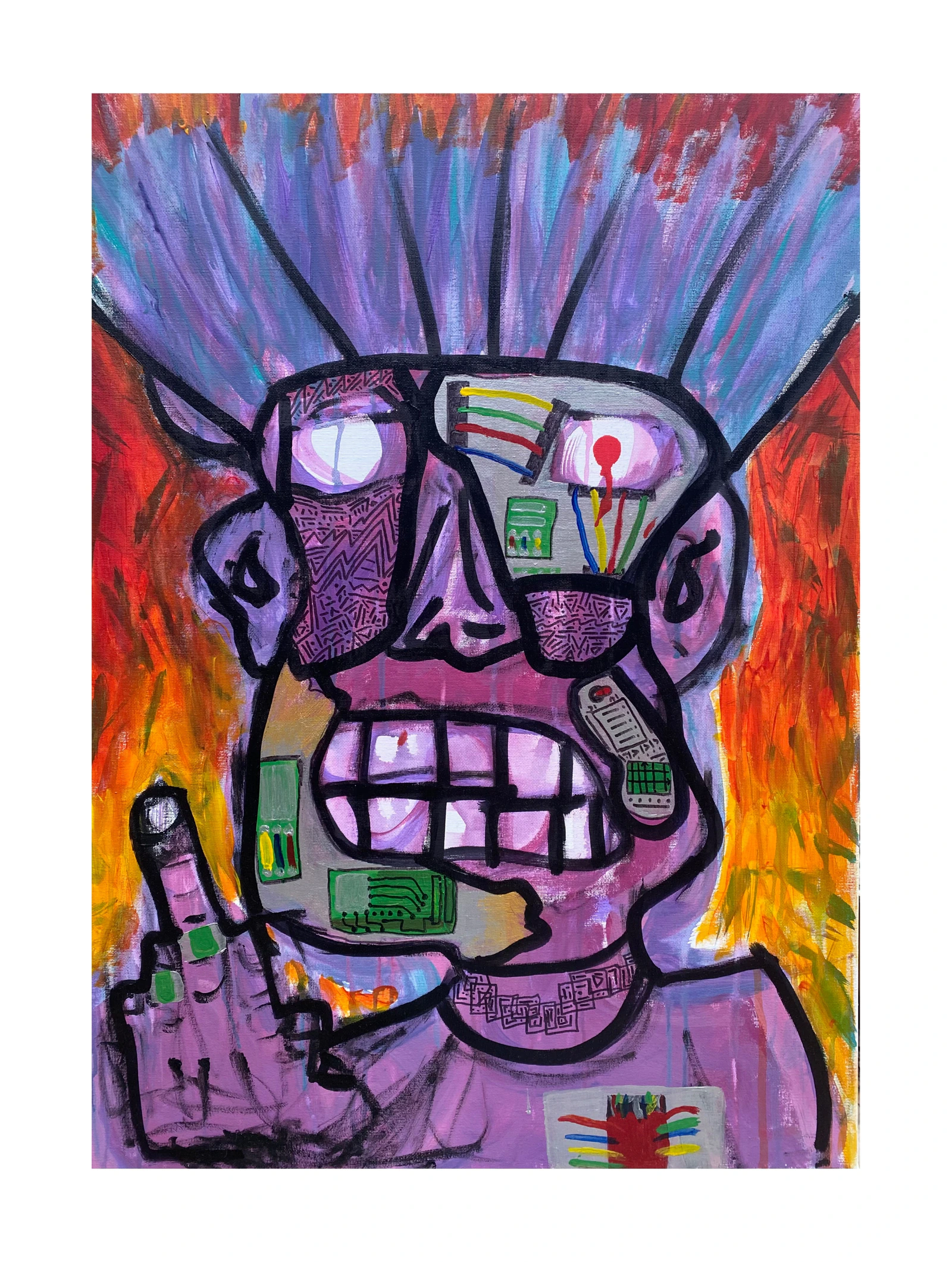 Jacinthe est né en Provence. Issu d’une formation agricole, il s’épanouit dans le métier de maraîcher. Après avoir essayé différentes pratiques artistiques, c’est en 2024 qu’il donne pleinement forme à son art avec une peinture sur toile. Aujourd’hui installé à Marseille, il revendique une peinture ancrée dans le réel, celui du vivre-ensemble, un travail sur les textures et les visages, des personnages de rue, des portraits familiers et des histoires collectives. Jacinthe, pseudonyme floral, évoque l’éphémère de l’éclosion. Un nom en adéquation avec une démarche artistique intuitive, à l’image de ses envies créatrices.