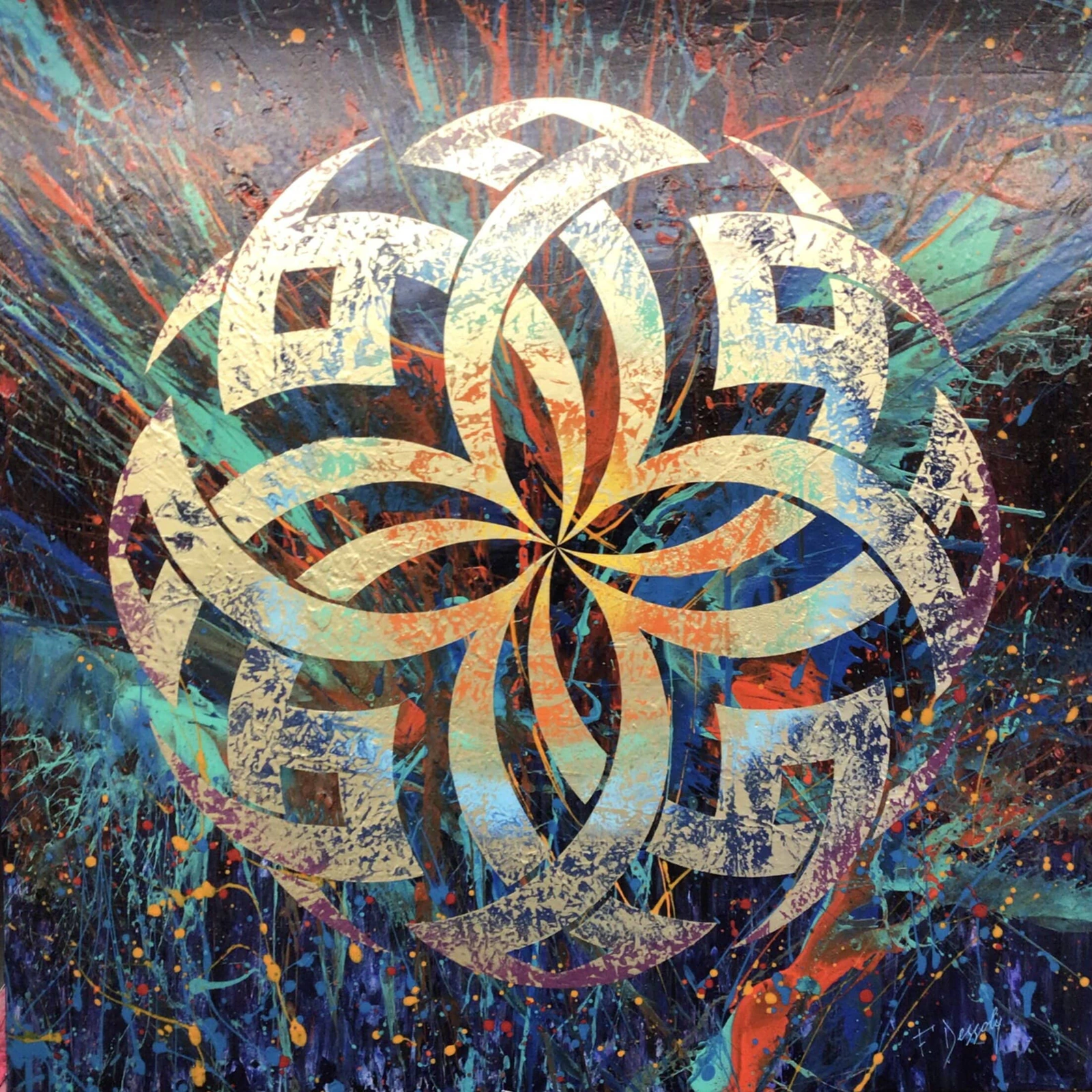 Entre lumière et vibration, une quête artistique au cœur du sacré. Né en 1974 à Auchel, dans le Pas-de-Calais, et installé en Bretagne depuis 2007, cet autodidacte passionné a fait de l’art vibratoire une véritable philosophie de vie. Dans un monde où l’expression artistique est souvent réduit à une esthétique ou à une valeur marchande, Fabien Dessoly incarne une démarche résolument différente. C'est après la quarantaine, durant une période de soins, qu'il adopte la toile comme nouveau champ d'expériences. Ses toiles, vibrantes et empreintes de spiritualité, rappellent que la lumière est toujours présente, même dans les moments les plus sombres. Elles invitent à la contemplation, à l’introspection et à l’espoir. Fabien Dessoly n’est pas seulement un artiste : il est un passeur entre les mondes visibles et invisibles, un alchimiste moderne qui transforme la matière en vibration et la vibration en lumière.