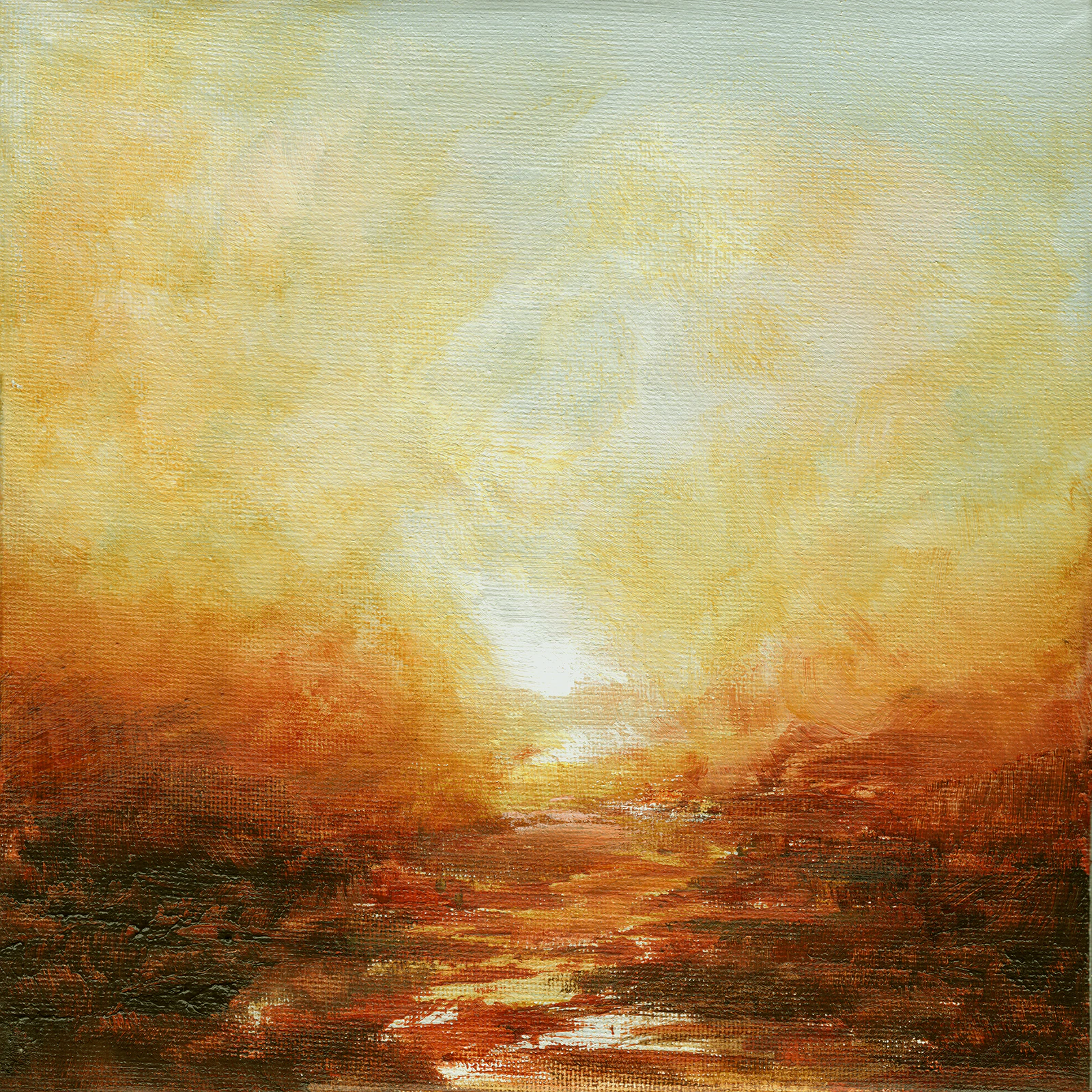 Alchimie 34 est la concrétisation d'une forte envie de peindre un paysage ancien dans un style dérivé de celui de Turner mais en y apportant une touche abstraite dans le sujet. Le choix du petit format s'est vite imposé de lui-même en regard des contraintes techniques liées à l' acrylique. Je voulais en effet peindre à la fois et dans un même temps avec 2 techniques opposées, celle du fondu et celle du glacis. La première consistant à mélanger les couleurs sur la toile et la seconde a les superposer par transparence. L’acrylique séchant beaucoup trop vite pour la conserver humide sur toute la surface, il fallait que celle-ci soit assez petite pour me laisser le temps de mélanger les couleurs à chaque endroit de la toile. J' ai pu de ce fait conserver une vision globale de la composition me permettant de m'affranchir de toute retouche.