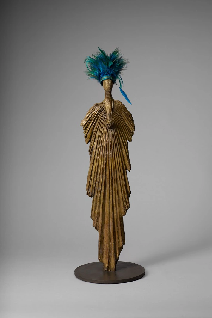 Bronze patiné et plumes - exemplaire numéroté 2/8 Réalisée à partir d'une feuille de palmier travaillée à la cire d'abeille et graine puis moulée et fondue en bronze