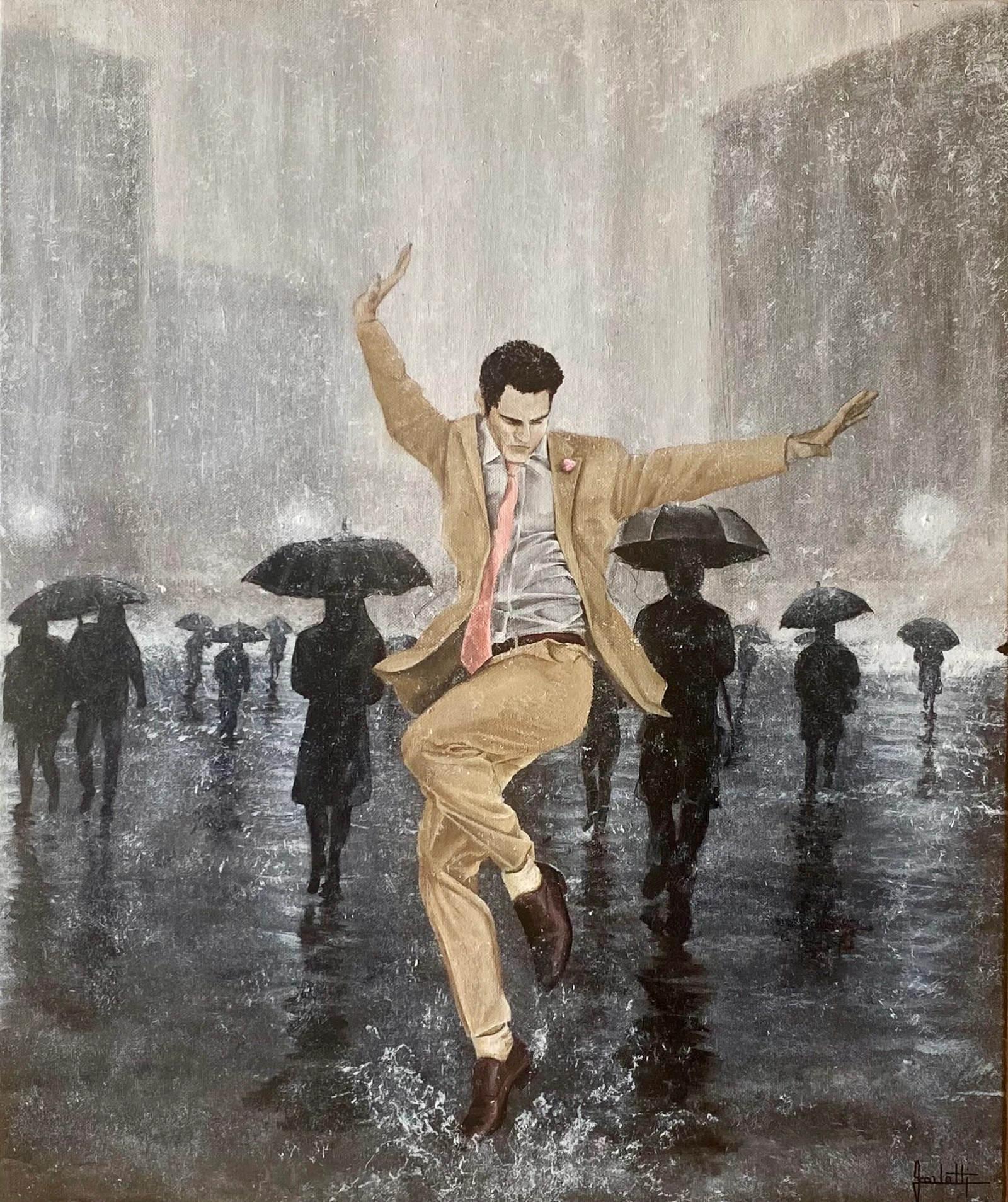 Le monde s’abrite, lui s’émerveille : l’âme d’enfant ne connaît pas la grisaille.