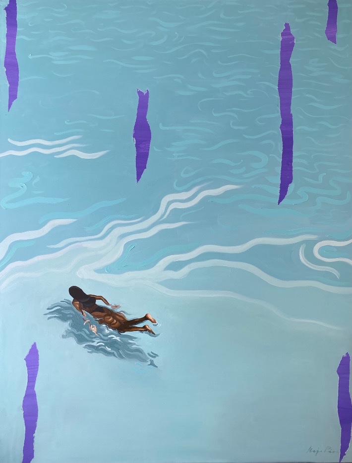 Majo Pino, Marjorie Pino Marquina (née en 1982 à Santiago, Chili) est une artiste basée à Paris qui explore les émotions inspirées par l'expérience humaine. Ses peintures sont composées de scènes oscillant entre rêve et réalité, chaos et calme, apparence et réalité, le connu et l’inconnu. Elle expérimente dans ces tableaux une nostalgie constante qui imprègne ses compositions. L'idée d'en faire son métier l'habite depuis toujours. Mais ce n'est qu'en 2018 qu'elle en a fait son métier, après un accident de santé inattendu qui l'a reconnectée au temps et à la vie.