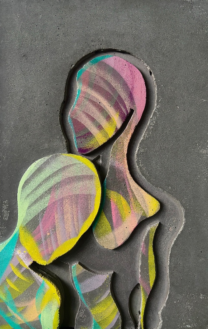 Bas-relief rehausse à la bombe acrylique sur plaque béton