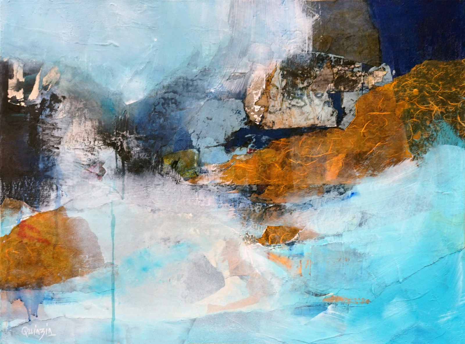 Marianne Quinzin est une artiste peintre française dont le travail s’inscrit dans une recherche entre figuration et abstraction. Inspirée par la nature, les paysages, la lumière et les harmonies colorées, elle développe des compositions sensibles et poétiques, où la couleur occupe une place essentielle. Diplômée des Arts Décoratifs et de l’École nationale des Beaux-Arts de Lyon, elle se consacre entièrement à la peinture depuis de nombreuses années. Son univers artistique invite à un voyage entre mémoire, imagination et vitalité du vivant. Ses œuvres sont présentes dans de multiples collections privées en France et à l’étranger.