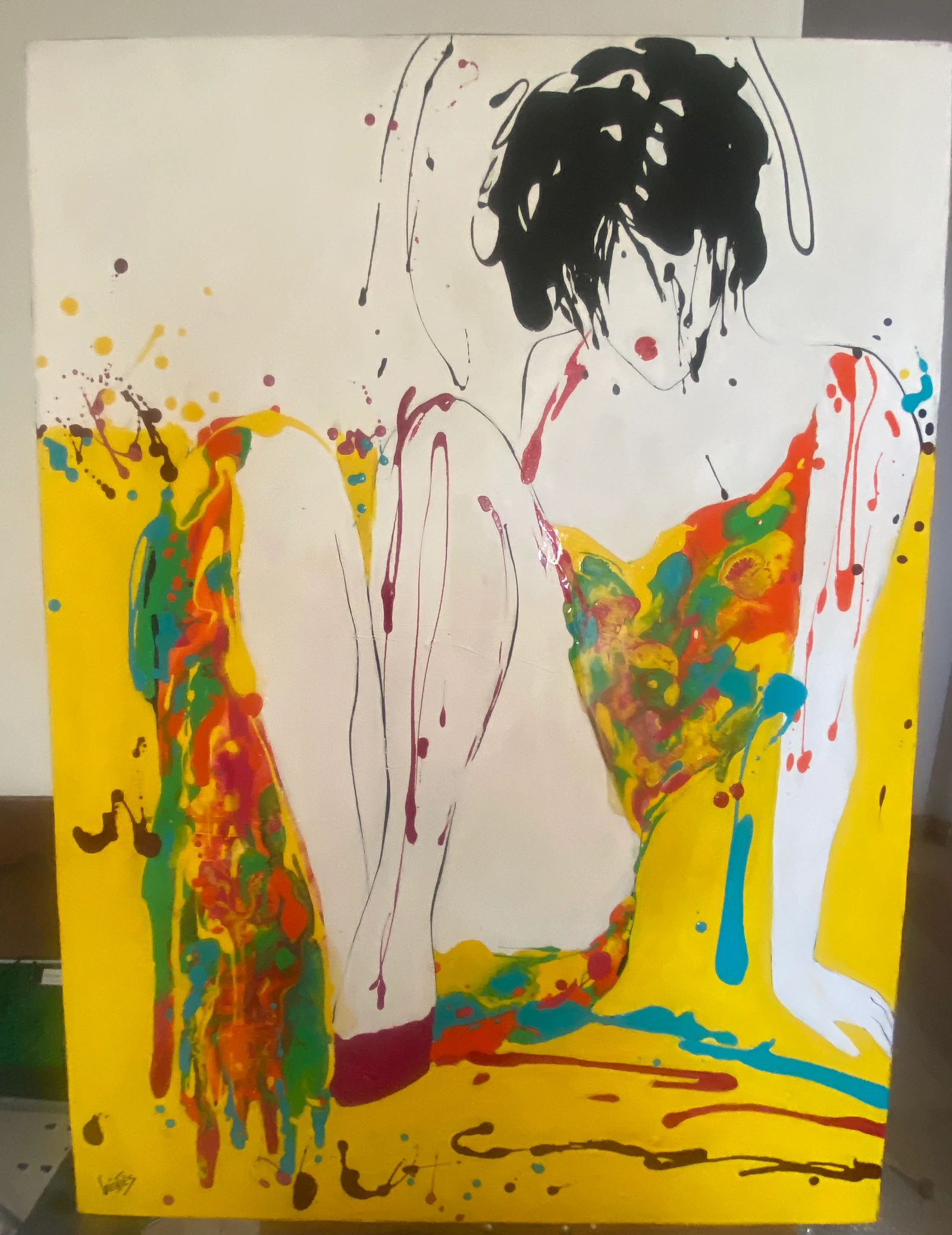 Mon sujet de prédilection est la femme . Je commence par une série de croquis ,cherchant une position qui m'inspire. Je cherche à travers la personnalité de mes modèles, leurs postures ,les cadrages ,à traduire mes propres humeurs et émotions .Je joue avec la matière ,organisant une mixité créative qui mêle le papier ,la résine , le tissu ,le tout associé à l'acrylique.