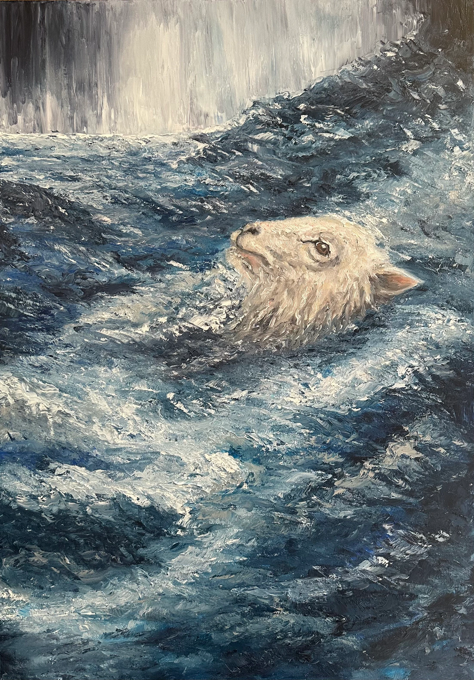 Mon travail questionne la frontière entre l’humain et l’animal, entre le quotidien et l’apocalypse silencieuse du climat. Chaque peinture est un cri coloré, une tentative de saisir ce moment d’équilibre instable où tout peut basculer.