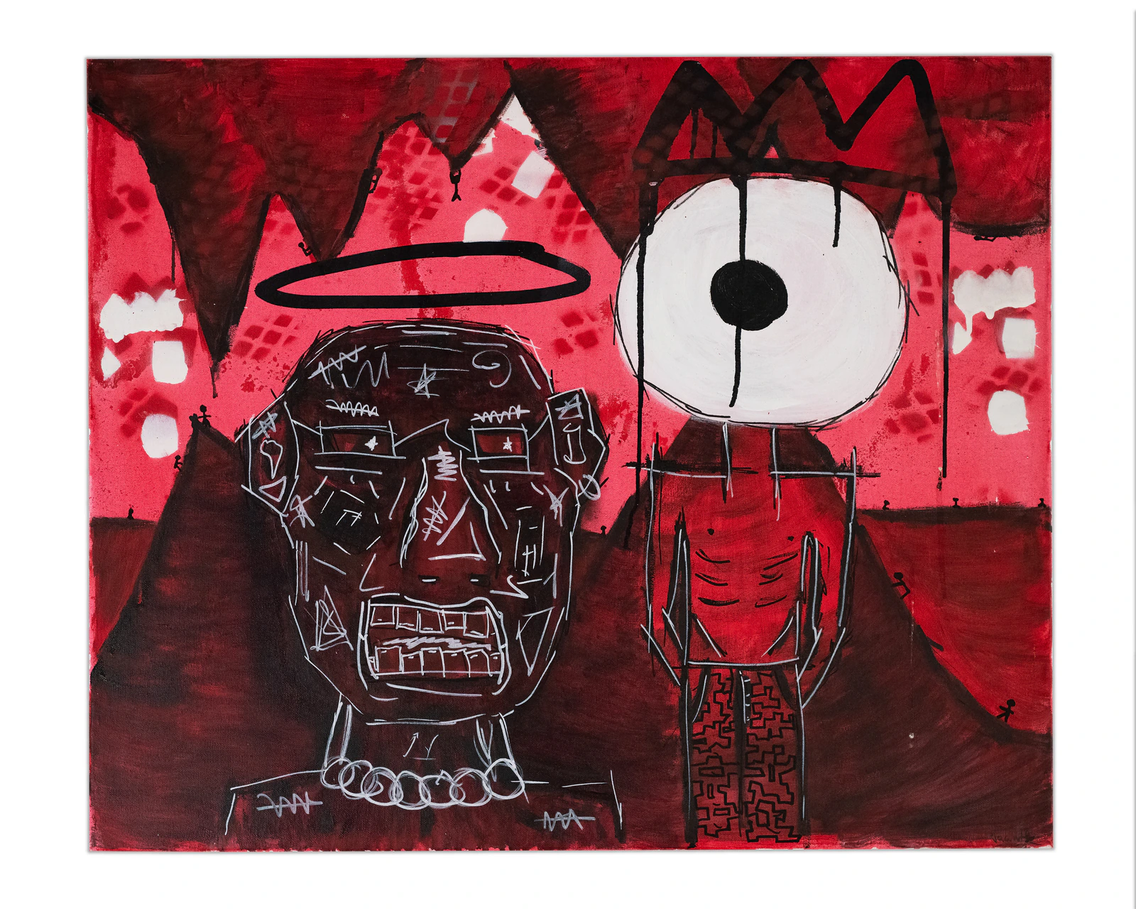 Où sont-ils ? Un rêve ou la réalité, dans une grotte infernale ou leurs intérieurs sombres ? Lorsque l’observation est reine, les deux protagonistes attendent, réfléchissent ou cherchent une issue pour sortir de ce monde où les portes se ferment, squelettiques et tatoués, nonchalants et balafrés, rois et anges déchus.