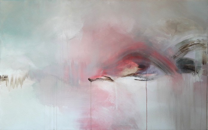 Je considère que l'enfance est à elle seule un royaume qui contient toutes les clés de compréhension du monde et de ce que nous sommes vraiment. Il y a indéniablement une indéfinissable nostalgie, parfois teintée de mélancolie qui accompagne les souvenirs de cette période fondamentale et fondatrice de notre être. Empreint de ces pensées, j' ai commencé à concevoir cette œuvre comme un paysage enfantin dans lequel des tons pastel occupent la presque totalité de l'espace dans une sorte de voile opaque. Des arches aux couleurs plus soutenues, comme des portes ouvertes sur un autre monde, sont placées dans une disposition anarchique rendant la scène emprunte d'un doux mystère. Il semblerait qu'une vie cachée puisse en surgir à tout moment.