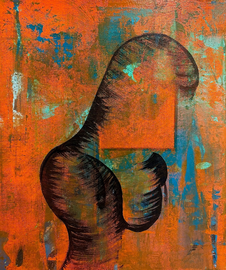 Autodidacte ayant débuté par l’écriture, j’ai développé au départ l’aspect graphique pour présenter le texte avant que ce dernier ne prenne le pas sur les mots. Mon travail est principalement une recherche autour de l’humain et plus particulièrement de la représentation de l’être dans le regard d’autrui. La dualité entre la reconnaissance et la connaissance de l’autre et de soi-même. L’absence de visage et la transparence des silhouettes sont pour moi le moyen de faire entrer le spectateur dans ces dernières et de se les approprier. J’aime laisser le champ libre à chacun de s’en raconter l’histoire, d’y projeter ses envies, ses rêves, ses peurs, ses révoltes… J’apprécie de varier les supports, cartons entoilés, plexiglass, béton ainsi que les médiums bombe, peinture, posca, collages … Mes influences sont multiples de Francis Bacon aux surréalistes en passant par le mouvement Dada et le Street-art. Je défends l’idée que l’art peut être aussi sacré qu’insignifiant mais qu’il n’en reste pas moins vital et essentiel à chacun.