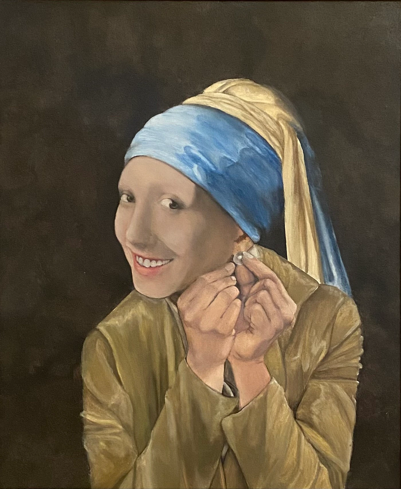 le musée s’est éteint, libérer de ses obligations, elle retire sa boucle d’oreille, la jeune fille, respire enfin. Œuvre primée 1er prix - printemps des arts 2023