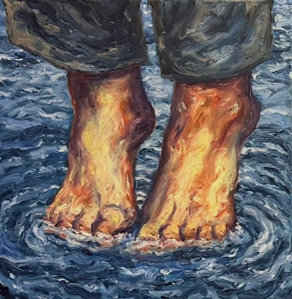 Mon travail questionne la frontière entre l’humain et l’animal, entre le quotidien et l’apocalypse silencieuse du climat. Chaque peinture est un cri coloré, une tentative de saisir ce moment d’équilibre instable où tout peut basculer.