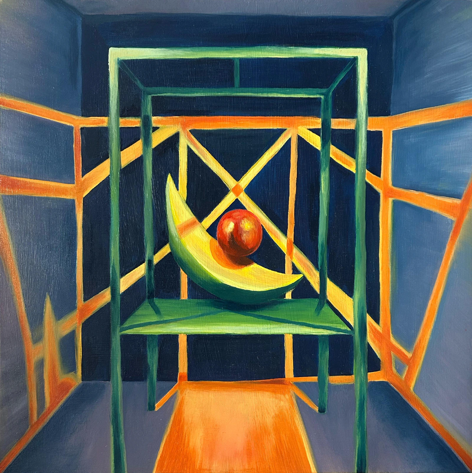 Cette peinture est une interprétation de l'œuvre "Boule suspendue" (1931) de Giacometti. Les inspirations envers l’art moderne, période intense de liberté créative, sont nombreuses dans mon travail. S’inspirer et plonger dans le passé, se réapproprier et apporter un regard nouveau afin qu’elles ne soient jamais oubliées et toujours redécouvertes. L’art c’est aussi aimer transmettre, donner envie au regardeur d’aller creuser plus loin et enfin montrer que la création ne peut exister sans l’inspiration.