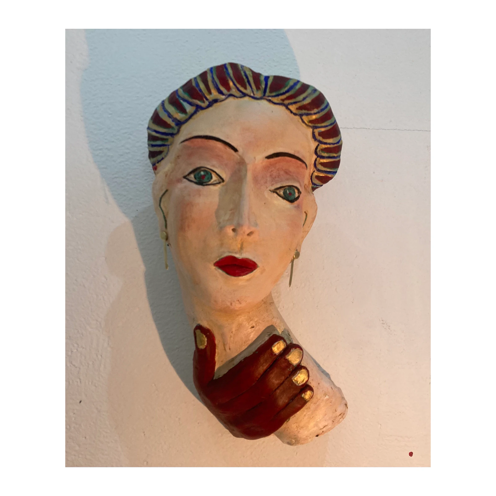 Pièce unique. LA MAIN AU COLLET... Est-ce sa main ? Une autre main ? Que vient-elle faire sur le cou, cette main ? Impassible la dame ? ou tétanisée ? Le dénouement est à venir. Cette oeuvre parle de notre rapport à l'autre, de la peur ou de la confiance... Elle exprime la tension subtile entre retenue et émancipation, protection et contrainte. Avec ses couleurs chaudes et son regard profond, elle invite à plonger dans un univers intime et chargé d'émotion. Elle apportera une présence puissante et mystérieuse à votre espace, captivant le regard et le cœur.