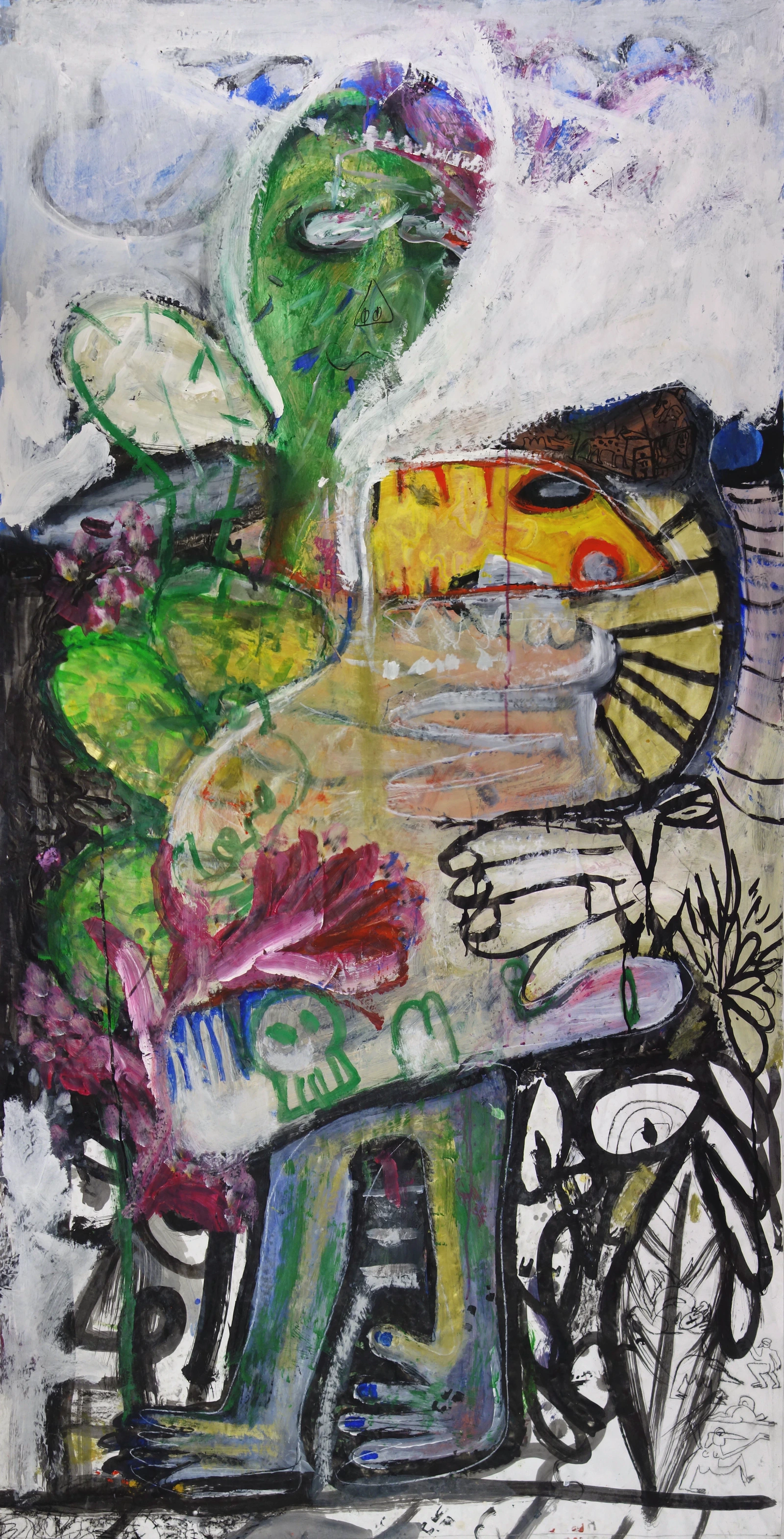 Technique mixte sur papier. Papier accroché sur une structure en bois.