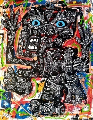 “Je peins par nécessité... sans penser, une espèce d'automatisme libre. Je laisse mon inconscient diriger ma main. Je cultive mes obsessions, me sers de mes démons, de mes fantômes pour en tirer une énergie créatrice. Je crois qu'un artiste est avant tout une antenne, un récepteur d'émotions, un passage dans différents mondes. Dans ma peinture, chaque personnage est rempli d'histoires, de créatures, c'est un mouvement permanent de mort, d'amour, de sexe...de vie tout simplement. Nous sommes faits de détails. Notre vie est rythmée par eux ...sans eux nous n'existerions pas, on deviendrait transparent. Au-dehors nous ne sommes que des mots, des paroles, à l'intérieur nous sommes couleurs et lumière... " JM Calvet " I paint by necessity… without thought, some form of liberated automatism. Iallow my unconscious mind to guide my hand. I cultivate my obsessions by making use of my demons and my ghosts to pull a creative energy from them. An artist is above all an antennae, an emotional receptor opening a passage into different worlds. Each character in my paintings is filled with stories and creatures, giving life to a constant movement of death, love, sex… of life to put it simply. We are all made up of details. Our life is constructed by them and in their absence we would not exist, we would become transparent. On the surface, we are only words, expressions, inside we are colors and light..." JM Calvet