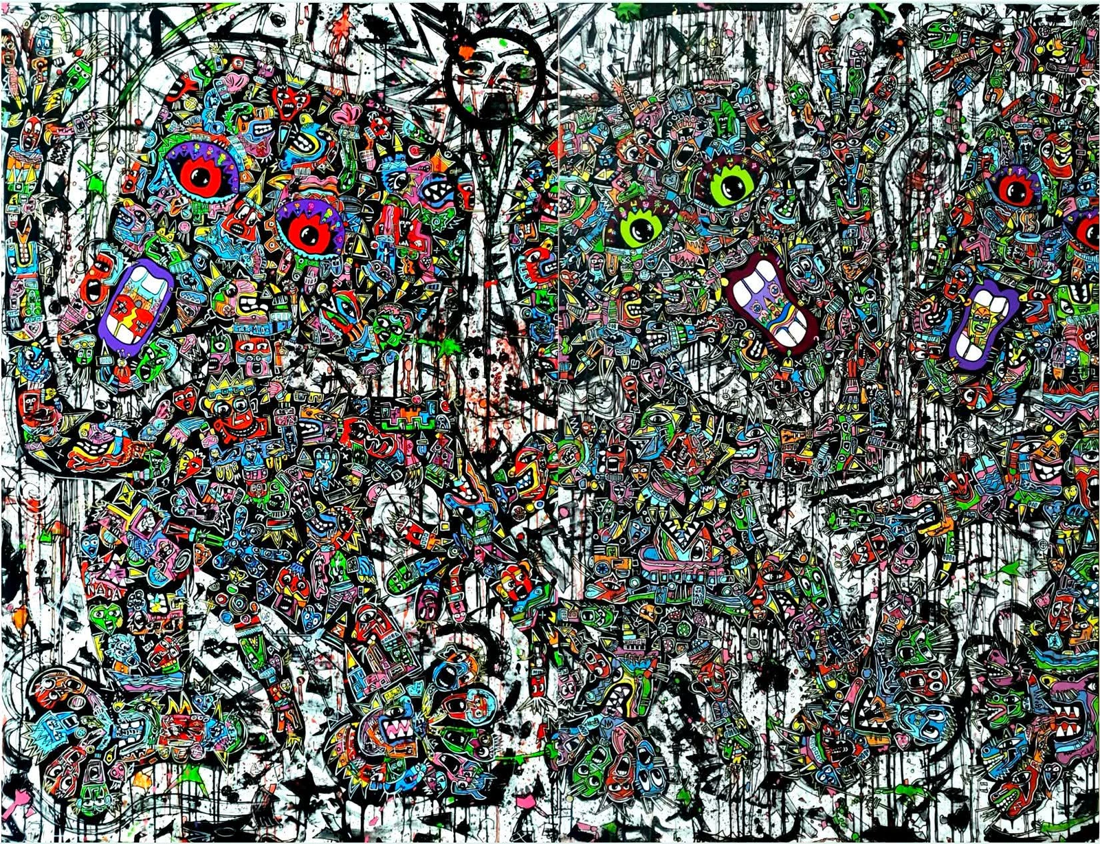 “Je peins par nécessité... sans penser, une espèce d'automatisme libre. Je laisse mon inconscient diriger ma main. Je cultive mes obsessions, me sers de mes démons, de mes fantômes pour en tirer une énergie créatrice. Je crois qu'un artiste est avant tout une antenne, un récepteur d'émotions, un passage dans différents mondes. Dans ma peinture, chaque personnage est rempli d'histoires, de créatures, c'est un mouvement permanent de mort, d'amour, de sexe...de vie tout simplement. Nous sommes faits de détails. Notre vie est rythmée par eux ...sans eux nous n'existerions pas, on deviendrait transparent. Au-dehors nous ne sommes que des mots, des paroles, à l'intérieur nous sommes couleurs et lumière... " JM Calvet " I paint by necessity… without thought, some form of liberated automatism. Iallow my unconscious mind to guide my hand. I cultivate my obsessions by making use of my demons and my ghosts to pull a creative energy from them. An artist is above all an antennae, an emotional receptor opening a passage into different worlds. Each character in my paintings is filled with stories and creatures, giving life to a constant movement of death, love, sex… of life to put it simply. We are all made up of details. Our life is constructed by them and in their absence we would not exist, we would become transparent. On the surface, we are only words, expressions, inside we are colors and light..." JM Calvet