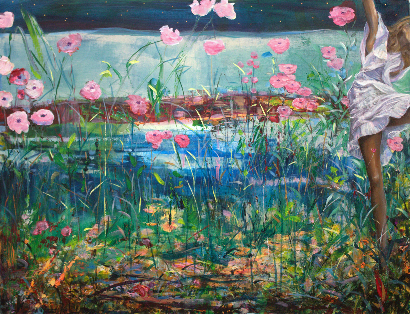 Dans cette œuvre à l'huile, intitulée "Les nuits de pleine lune, j'allais te voir danser", j'ai capturé une scène où le mouvement et la liberté expriment la beauté de l'instant. Les couleurs vives et la lumière reflètent l'énergie et l'émotion de cet instant fragile où la jeune femme danse parmi les fleurs sous la lune. Chaque pétale et chaque brin d'herbe sont imprégnés d'une symbolique de la vie et de l'effervescence, introduisant une dynamique vivante et apaisante dans tout espace qui l'accueille.