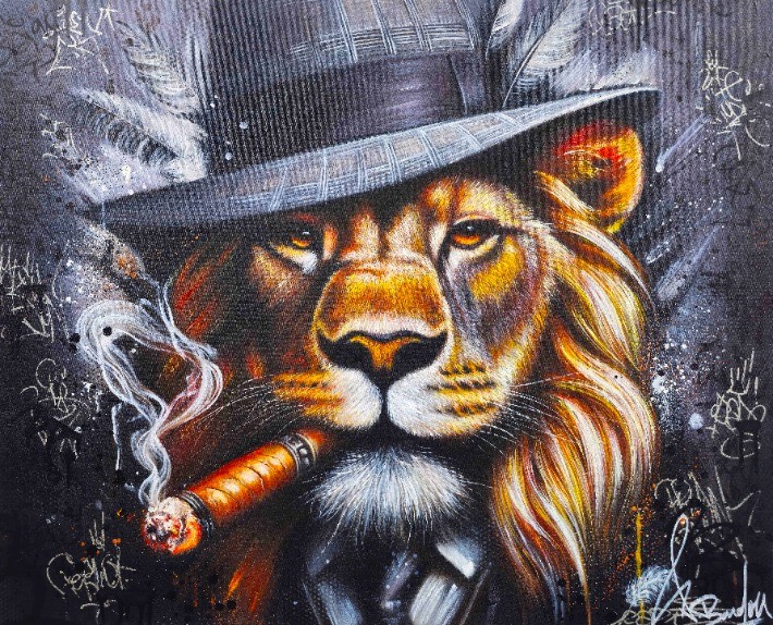 🐴 Tableau Lion Street Art Cigare Costume Chapeau Moderne : Lion Mafia 📌 Collection : Animaux 🎨 Artiste : Vincent Bardou 📏 Dimensions : 100 x 81 x 3 cm 🖌 Technique : Peinture à l'huile, Couteau 📅 Année : 2025 🖼 Œuvre Unique : Oui – 1/1 📐 Format : Rectangle 🛠 Support : Toile en Lin montée sur châssis en bois 🔳 Encadrement : Non 🔒 Finition : Vernis acrylique (2 couches) pour une protection optimale ✍️ Signature : Signé en bas à droite et contresigné au dos 📜 Authenticité : Livré avec certificat signé par l'artiste peintre Vincent Bardou
