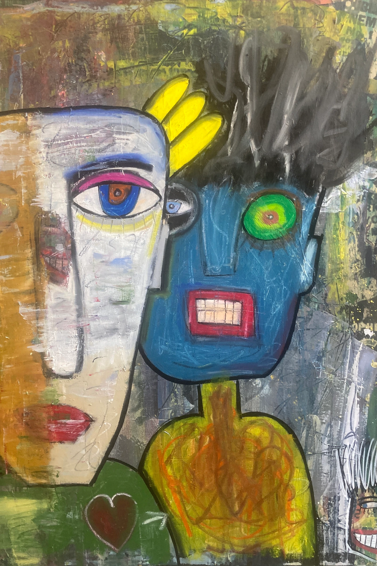 Apportez une touche forte et singulière à votre intérieur avec ce tableau original aux visages expressifs et aux couleurs vibrantes. Cette œuvre contemporaine mélange peinture, matière et spontanéité pour créer une composition graphique et vivante, idéale pour un salon, un atelier ou un espace créatif. Chaque détail attire le regard : contrastes intenses, regard hypnotique, textures visibles et style moderne assumé. Une pièce unique qui donne immédiatement du caractère à une décoration.