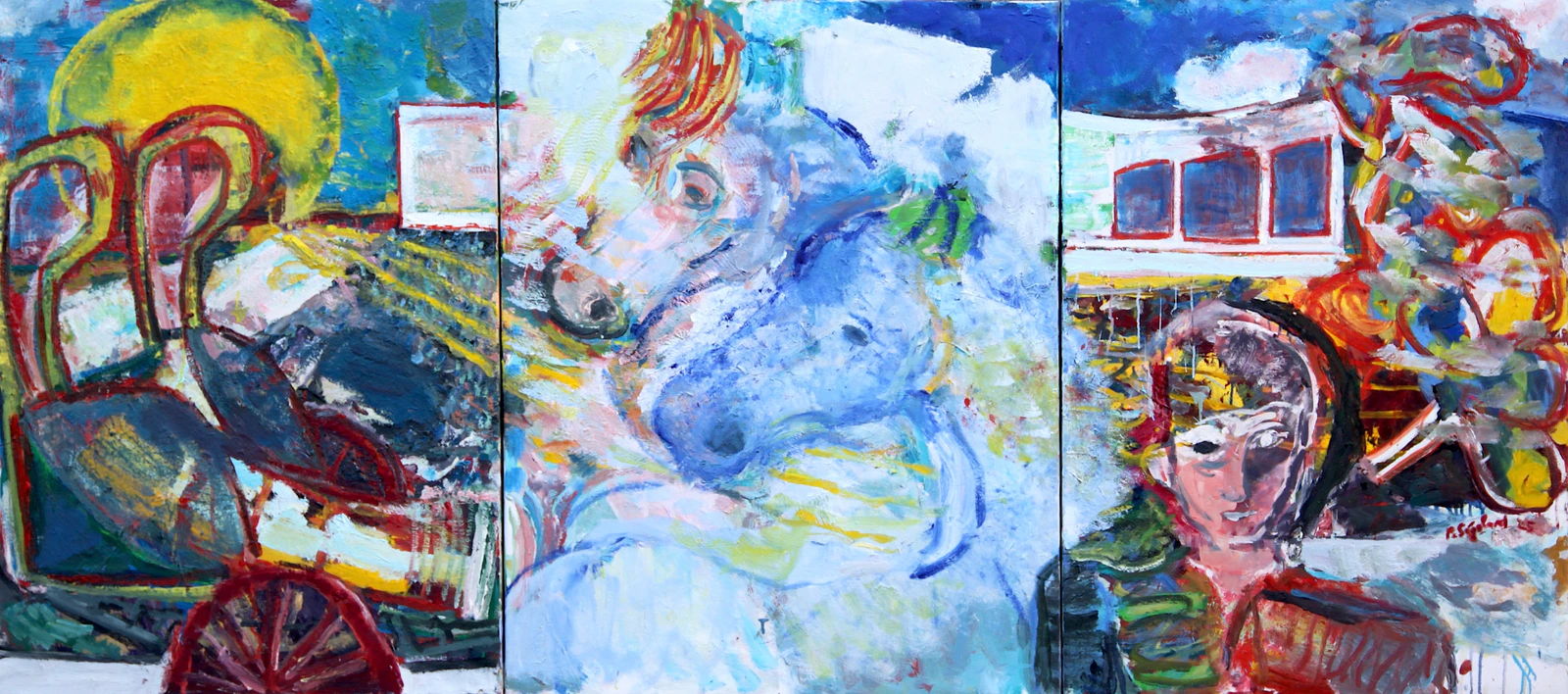 Triptyque recomposant les élans de Phaéton au matin de son désir d'envol sur le char du soleil, son père.