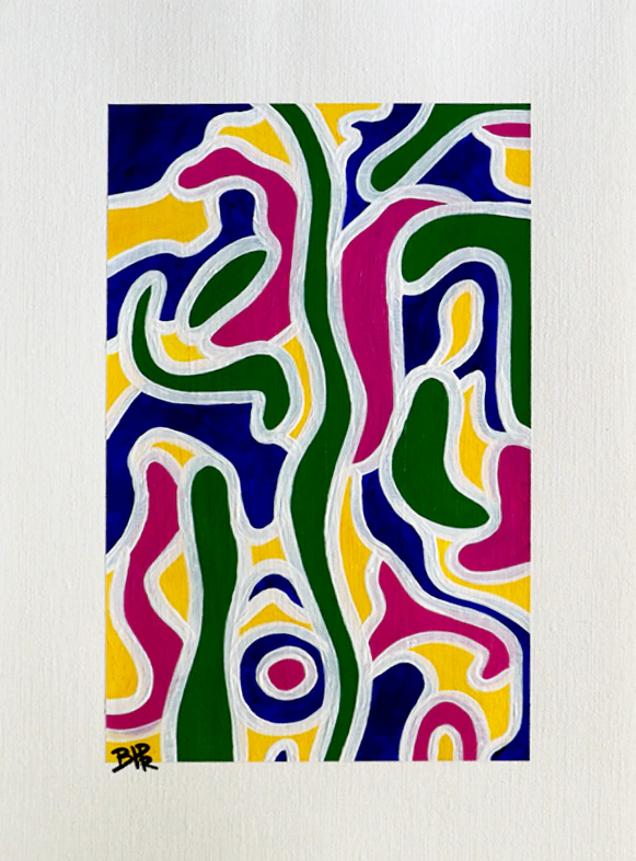 Ma Supernova qui constitue la moitié de mon travail artistique, vit sous toutes ses formes. Elle est une obsession, que je décline dans toutes les couleurs, sur des supports et des surfaces différentes. Voici une version sur papier 290 g, peinte à l’acrylique.