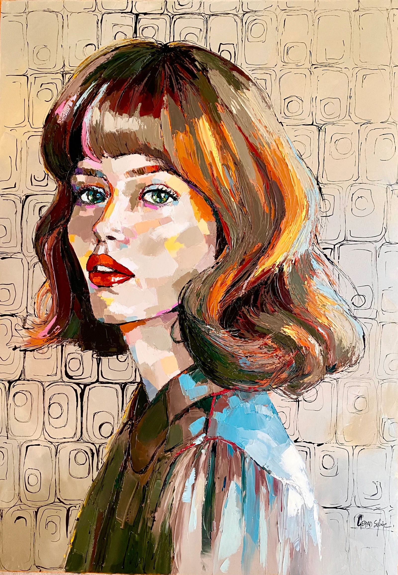 Dans cette œuvre, j'ai mélangé l'huile et l'encre pour explorer le mélange nostalgique du style bande dessinée avec un caractère figuratif et vintage. Le regard captivant de la femme, imprégné d'un sentiment de réflexion et de mystère, crée une connexion émotionnelle profonde. Les touches de couleurs vives et les traits audacieux apportent une dynamique énergique, inspirant la contemplation et l'admiration dans chaque espace où elle est exposée.