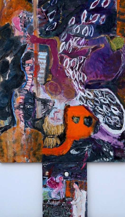Diptyque jouant sur la dichotomie entre la toile du bas et celle du haut, comme reviviscence des prédelles renaissantes. Evocation mythologique, en deux temps, chaque toile reprenant un moment différent du mythe.