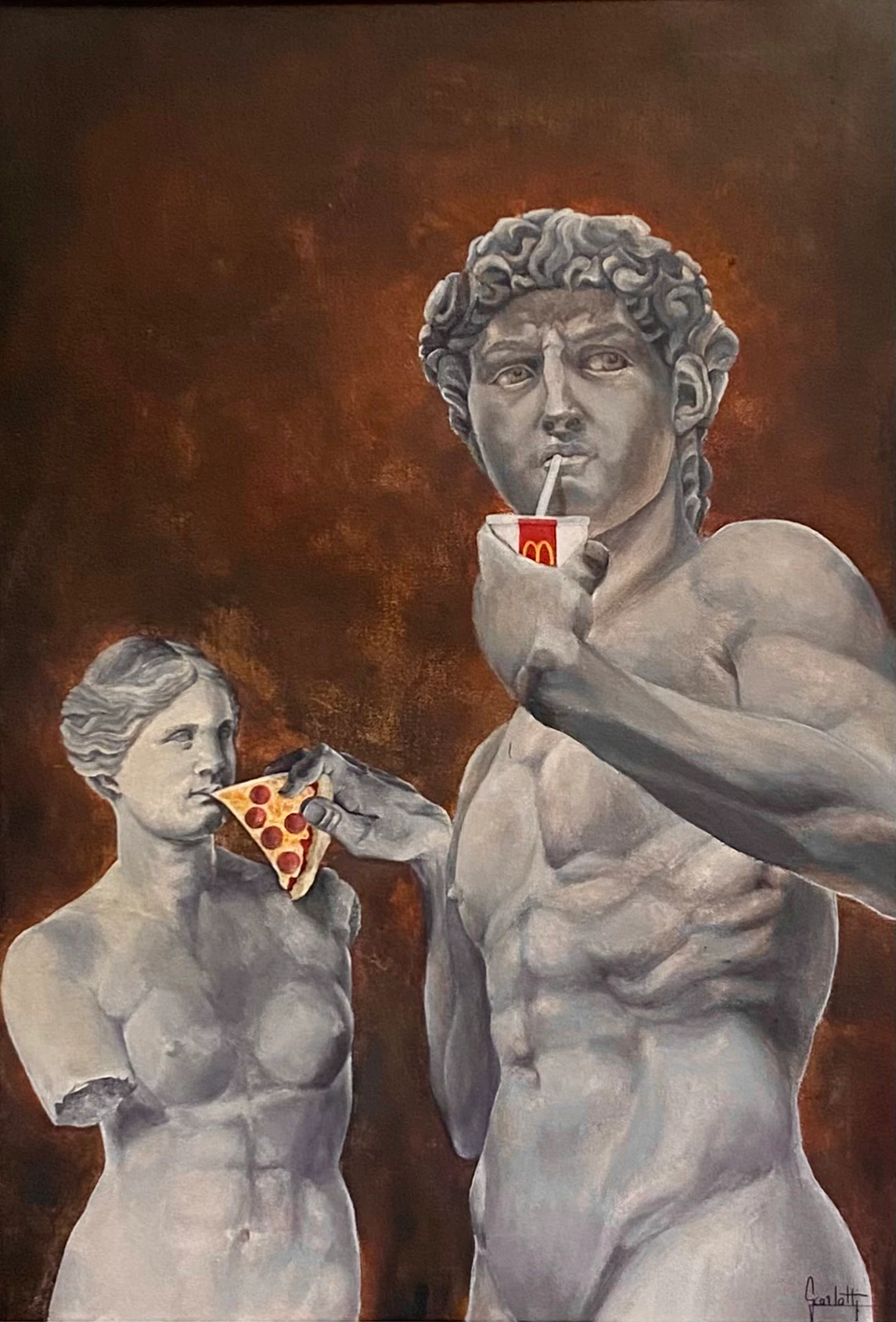 Vénus, profitant de la galanterie de David venu la nourrir, se nourrir également de la vue sur l’Apollon.
