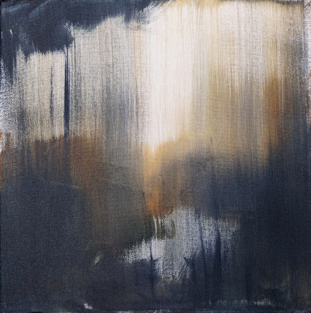 Pesanteur 12 s'apparente visuellement aux toutes premières photographies existantes, avec une lumière voilée par une texture diaphane, donnant l’impression que le paysage naturel en devient surnaturel. J’ai utilisé tout un jeu de dilutions pour parvenir à créer cette ambiance éthérée, proche des estampes japonaises et de leurs montagnes brumeuses. La lumière a été rendue par le fond blanc de la toile sans ajout de matière pour éviter toute lourdeur dans la facture. Ainsi, les différentes zones de la toile ont été reliées entre elles par une série de coups de pinceau exclusivement verticaux, rendant compte dans une sorte d’estompe globale de la relation directe existant entre le ciel et la terre. Il apparaît une tension dans la lumière qui est attirée a la fois par la gravité de la terre et par celle de la voûte céleste.