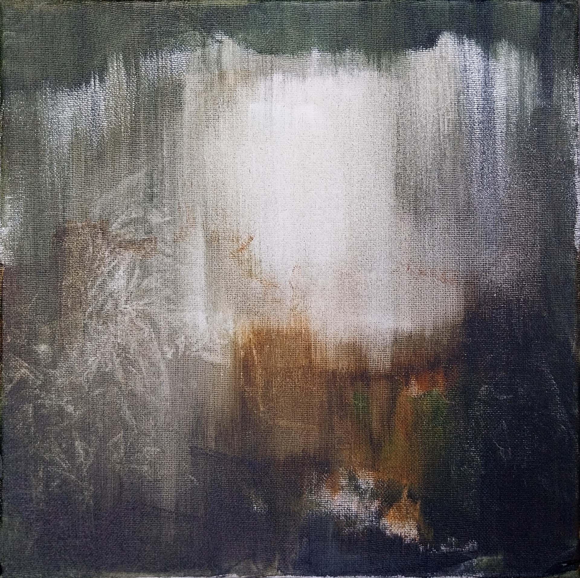 Pesanteur 13 s'apparente visuellement aux toutes premières photographies existantes, avec une lumière voilée par une texture diaphane, donnant l’impression que le paysage naturel en devient surnaturel. J’ai utilisé tout un jeu de dilutions pour parvenir à créer cette ambiance éthérée, proche des estampes japonaises et de leurs montagnes brumeuses. La lumière a été rendue par le fond blanc de la toile sans ajout de matière pour éviter toute lourdeur dans la facture. Ainsi, les différentes zones de la toile ont été reliées entre elles par une série de coups de pinceau exclusivement verticaux, rendant compte dans une sorte d’estompe globale de la relation directe existant entre le ciel et la terre. Il apparaît une tension dans la lumière qui est attirée a la fois par la gravité de la terre et par celle de la voûte céleste.