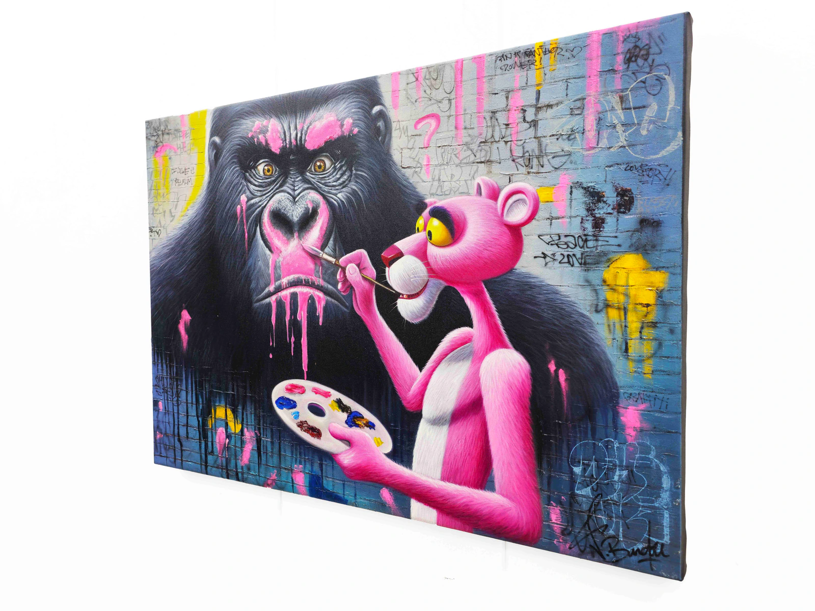 Nom Du Tableau : Pink Panther Vs Kong Collection : Pop Art Artiste : Vincent Bardou Dimensions : 100 x 70 x 4 cm Technique : Peinture à l'huile, Bombe de peinture, Aérographe Année : 2025 Œuvre Unique : Oui – 1/1 Format : Rectangle Support : Toile en Lin montée sur châssis en bois 4 cm Encadrement : Non Finition : Vernis acrylique (2 couches) pour une protection optimale SignatureNom Du Tableau : Pink Panther Vs Kong Collection : Pop Art Artiste : Vincent Bardou Dimensions : 100 x 70 x 4 cm Technique : Peinture à l'huile, Bombe de peinture, Aérographe Année : 2025 Œuvre Unique : Oui – 1/1 Format : Rectangle Support : Toile en Lin montée sur châssis en bois 4 cm Encadrement : Non Finition : Vernis acrylique (2 couches) pour une protection optimale Signature : Signé en bas à droite et contresigné au dos Authenticité : Livré avec certificat signé par l'artiste peintre Vincent Bardou : Signé en bas à droite et contresigné au dos Authenticité : Livré avec certificat signé par l'artiste peintre Vincent Bardou