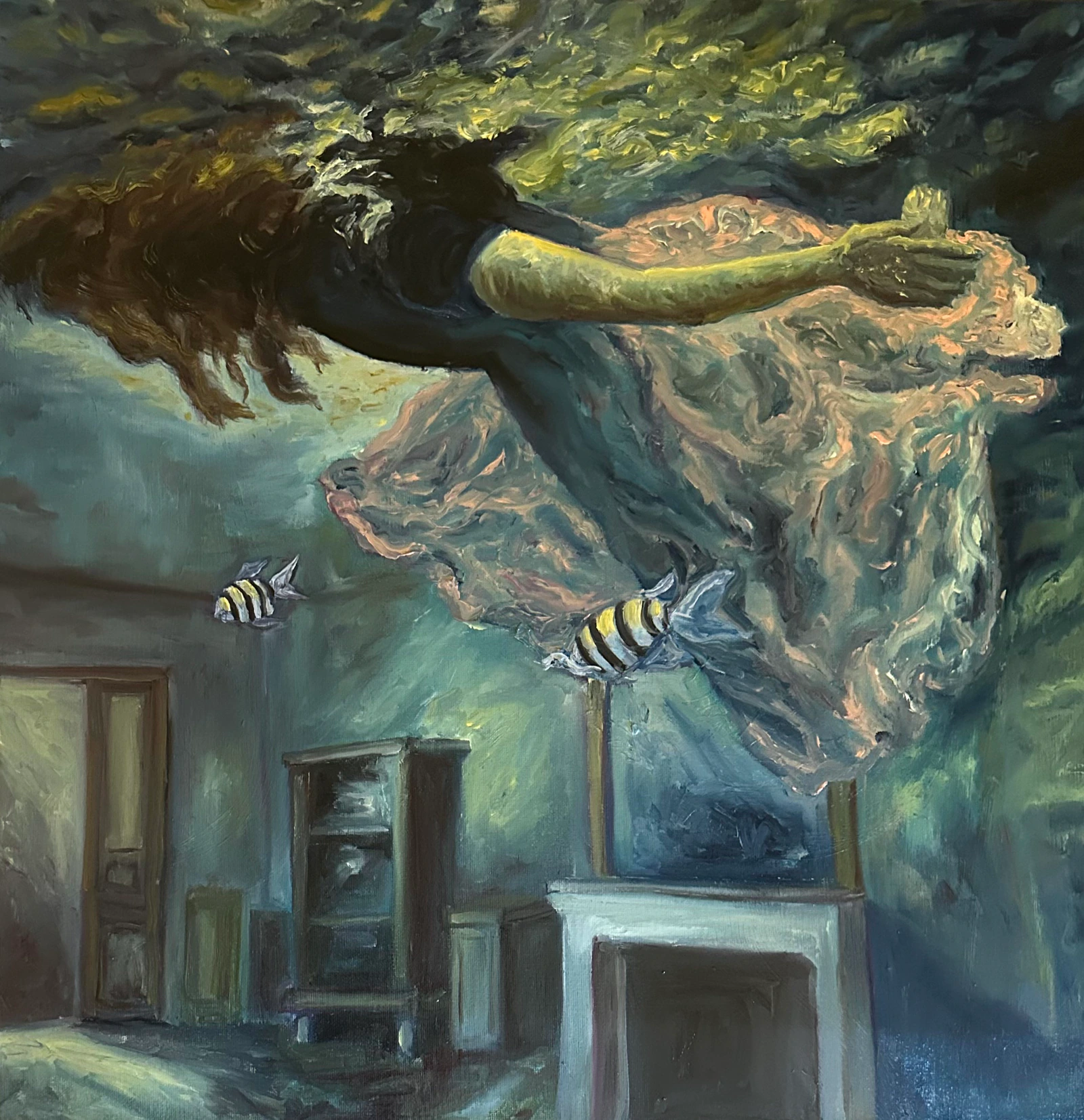 Artiste peintre et docteure en psychologie clinique, je mets en dialogue mes deux parcours : l’expérience de la clinique et la pratique artistique. Ma peinture, expressive et colorée, puise dans la psychologie un regard sensible sur l’humain, ses métamorphoses et ses vulnérabilités. Formée aux ateliers des Beaux-Arts de la Ville de Paris puis diplômée d’une licence en arts plastiques à La Sorbonne, je travaille principalement à l’huile, dont la densité me permet d’explorer des textures organiques, viscérales, parfois dérangeantes. J’alterne avec le crayon et l’aquarelle, en études préparatoires ou pour capter des atmosphères plus légères et fugitives