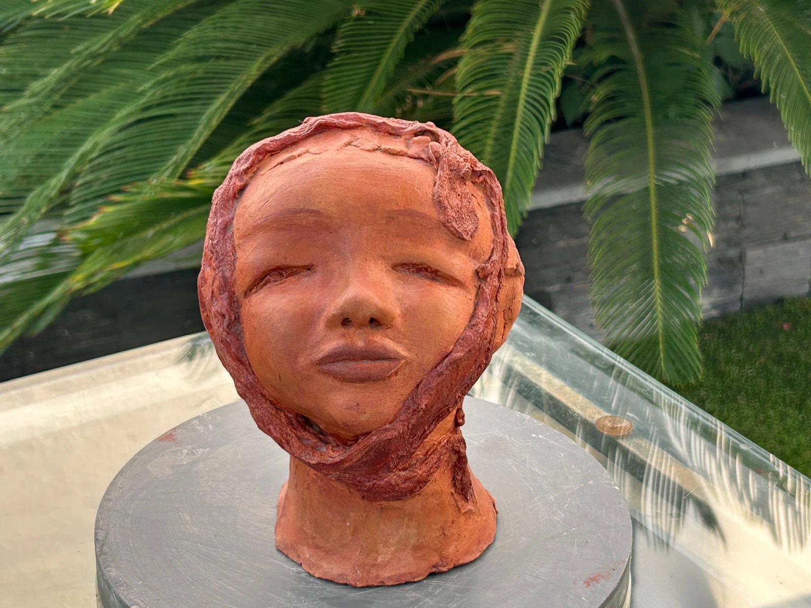 Qui lui a bandé la tête ? A-t-il mal ? Il s’est laissé faire, l’enfant malade. Dans son silence une force s’organise, sans plainte, sans démonstration. Cette sculpture est une immersion douce dans l’intimité humaine. J’ai voulu capturer la vulnérabilité et la sérénité d’un visage enfin apaisé, comme un instant suspendu. Son expression calme invite à la contemplation et apporte une présence chaleureuse et profonde, animant l’espace d’une énergie délicate et authentique.