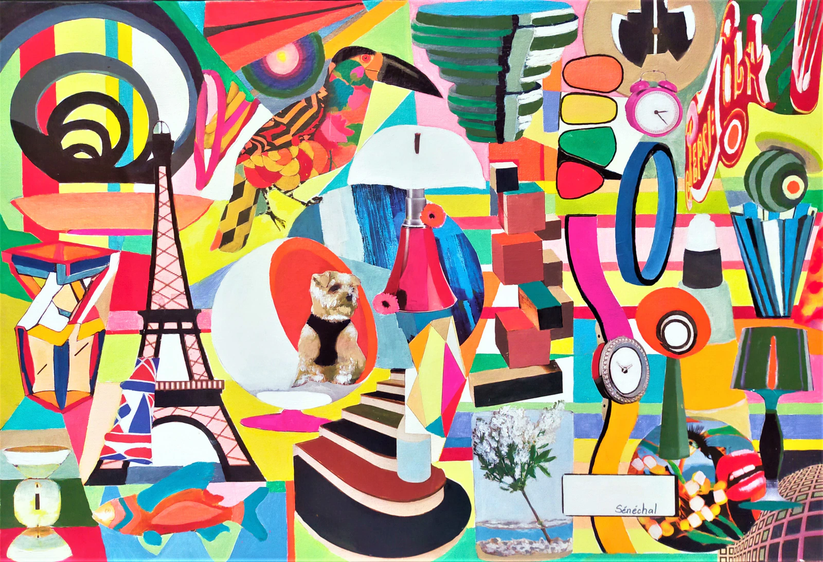 Dans cette œuvre, j'ai fusionné huile et collage pour capturer un dynamisme effervescent, un dialogue entre le réel et l'abstrait. C'est un hommage à l'expressionnisme, une célébration de la couleur et de la forme qui évoque la joie. En l'intégrant à votre espace, elle y infusera une énergie vivifiante, stimulant l'imagination et la conversation.