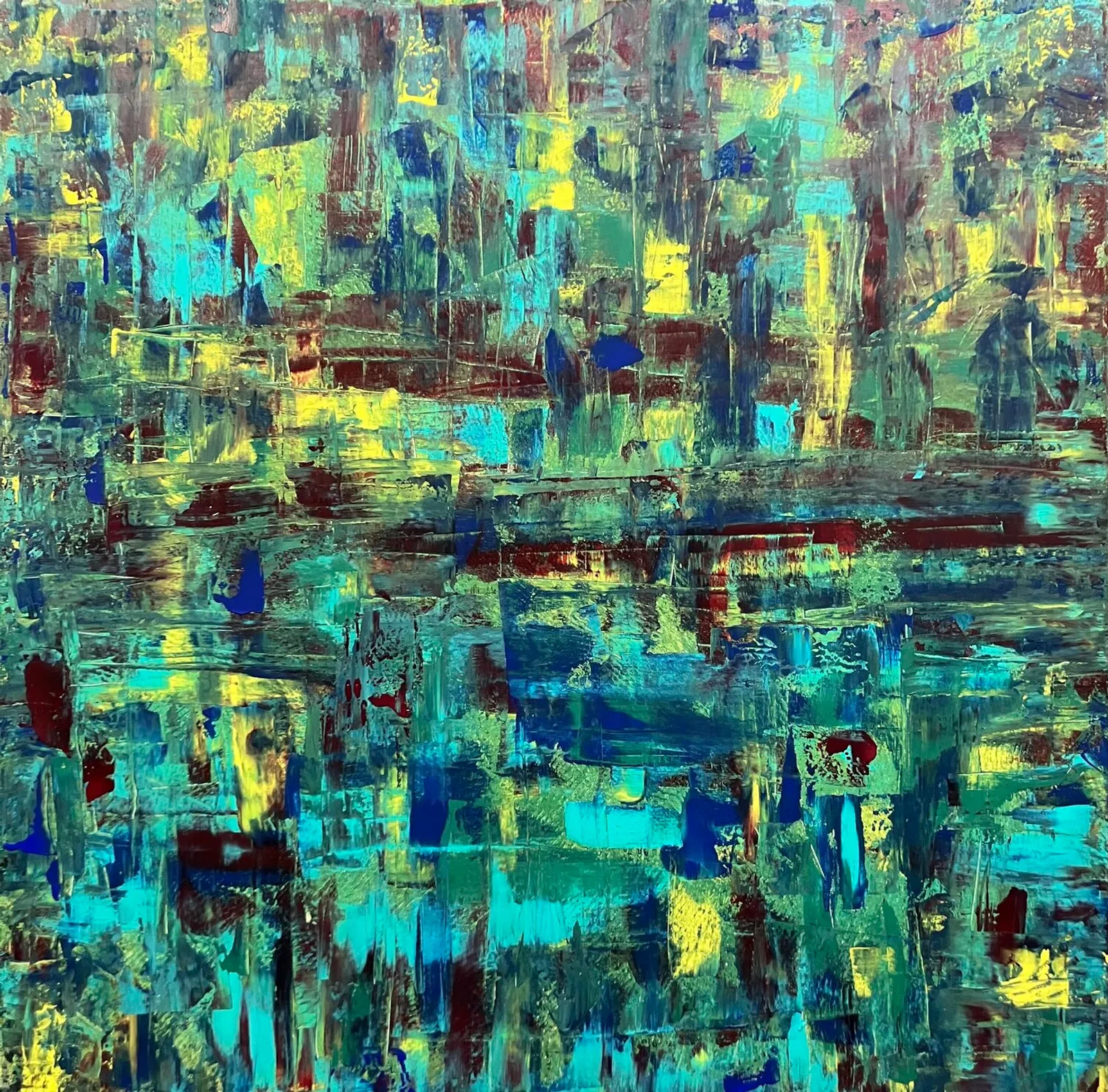 Sine Concessu — sans permission — explore la liberté comme un mouvement intérieur en perpétuelle expansion. La toile refuse toute conclusion : créer devient un dialogue ouvert, un espace d’expression affranchi des cadres et laissé volontairement en devenir. Les couleurs se superposent et s’entrelacent sans chercher l’aboutissement. Les bleus profonds installent la durée et la réflexion, les jaunes surgissent comme des éclats de conscience, tandis que les verts et les rouges nourrissent la tension et l’échange. La matière, stratifiée et non lissée, conserve les traces du geste et du temps. Rien n’est effacé. L’inachevé est assumé comme une position artistique : celle d’un esprit libre, toujours en transformation. Sine Concessu affirme la liberté de penser, de créer et d’évoluer sans retenue. Une prise de position silencieuse, mais résolument indépendante. Je choisis la liberté d’être ce que je veux, car jamais je ne cesserai d’exister…