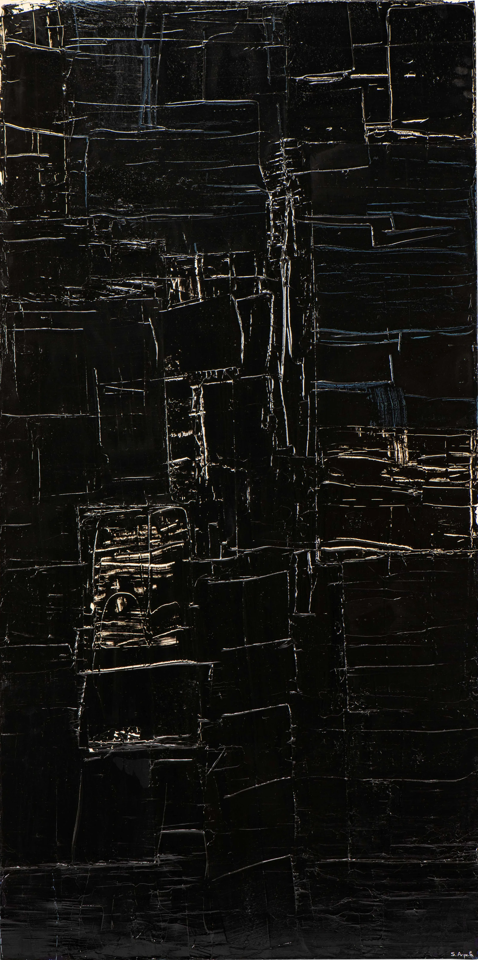 Dans Mon long chemin noir, j’explore l’idée du chemin comme un passage intérieur. Le noir s’impose comme une matière profonde et enveloppante, évoquant les moments d’ombre, de doute et d’introspection que chacun peut traverser au cours de la vie. À travers les textures et les mouvements de la peinture, ce chemin devient une trajectoire, un espace de transformation. Il ne représente pas un lieu réel, mais plutôt un paysage intérieur. Dans cette profondeur sombre, j’ai laissé apparaître des passages de blanc. Ces différences de lumière symbolisent pour moi le passage entre deux mondes — entre l’ombre et la lumière, entre le visible et l’invisible. Ce chemin devient ainsi un seuil, un espace de transition où l’on traverse l’obscurité pour pressentir une autre dimension.