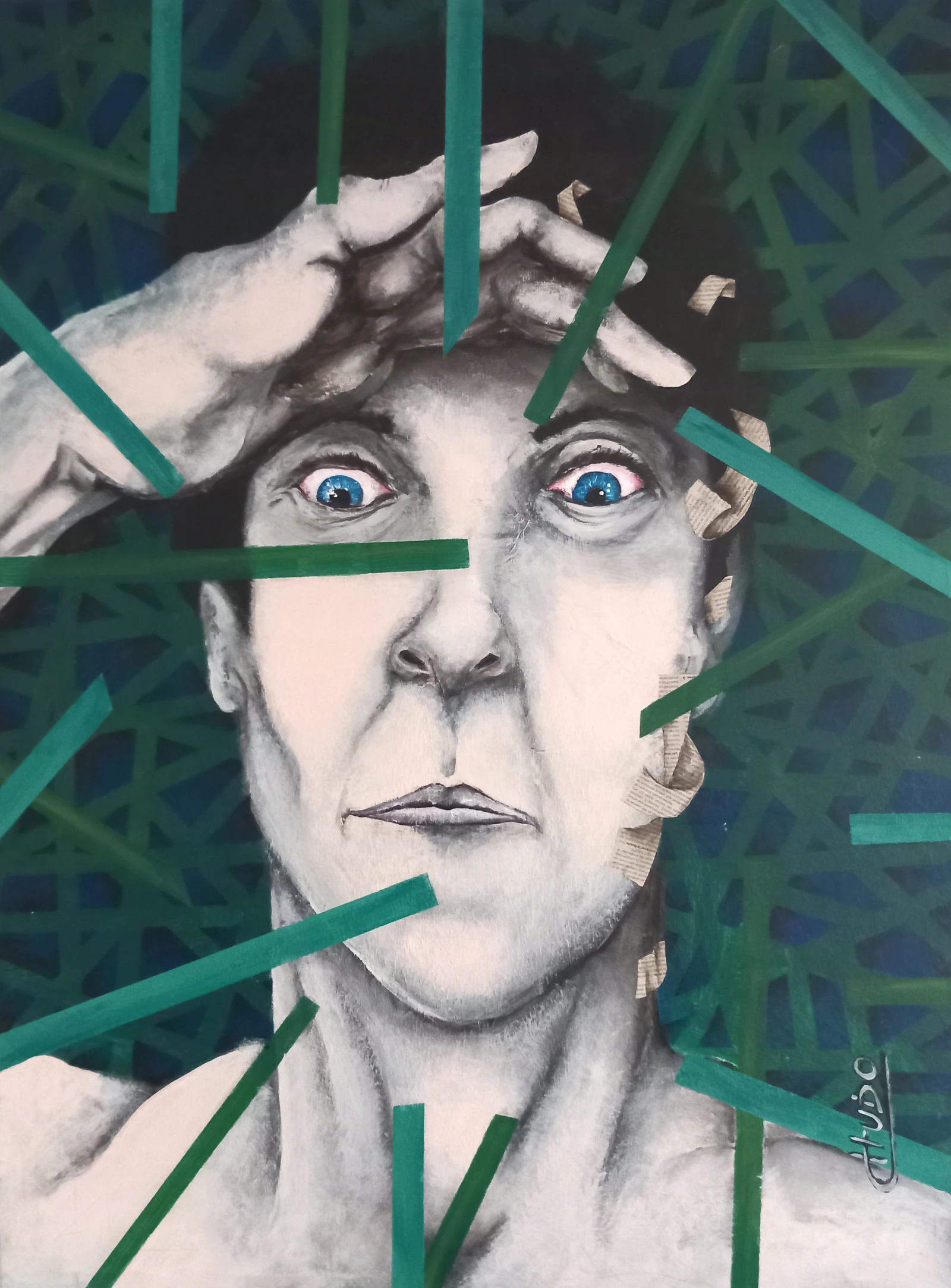 Je suis né en 1970 à Angers, France. Artiste autodidacte, je vis et travaille sur Nantes, France. J'ai un parcours atypique et loin des cadres académiques, dans lequel je ne me retrouve pas. Avec une vie tumultueuse et souvent très dure, le rapport aux autres n'était pas forcément toujours simple pour moi, ce qui m'a fait réfléchir sur le sens de ma vie, tirailler entre le besoin d'échanger et la recherche de soi. Stimuler Par ma curiosité et le rejet d'être confiné dans une case, j'ai eu l'occasion de faire un grand nombre de métiers, militaire de carrière (pas très longtemps), animateur socio-culturel, archéologue, assistant régisseur dans une compagnie de théâtre, paysagiste, ouvrier du bâtiment et j'en passe. Au milieu de tout ça la peinture a toujours été présente . De nombreuses expositions en dehors du milieu artistique, dans des cafés, des restaurants, friches ainsi que dans le milieu associatif ont jalonné mon parcours. Tout ceci m'a permis d'alimenter ma réflexion sur mon art et la vie qui sont pour moi liés profondément. J'ai abordé la pratique artistique comme un moyen de compréhension et d'extériorisation au point d'en devenir viscéral.