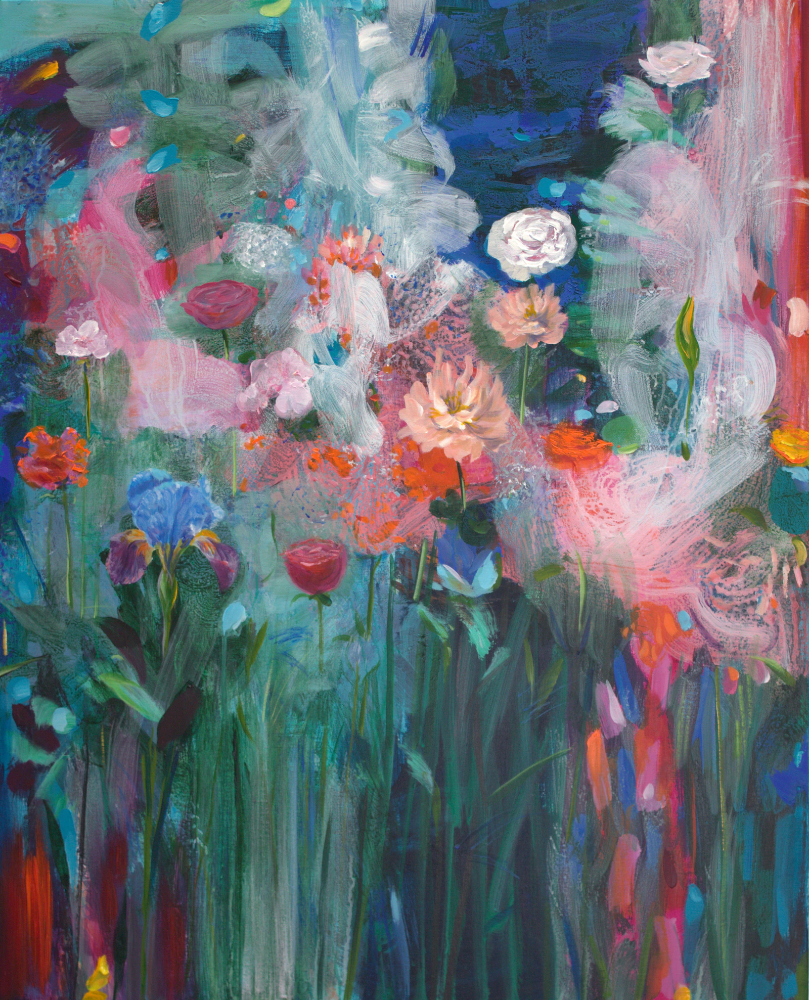 Dans cette toile, j'ai plongé au cœur d'un jardin sauvage de printemps, capturant la vivacité des fleurs en ébullition. Chaque touche d'huile est une émotion, un murmure de la nature qui parle de renouveau et de passion. J'ai voulu symboliser le trouble des sentiments humains, aussi fluctuants et magnifiques que ces pétales sous la caresse du vent. Ce tableau est une invitation à ressentir, à se laisser envahir par le beauté et le mystère de la vie.