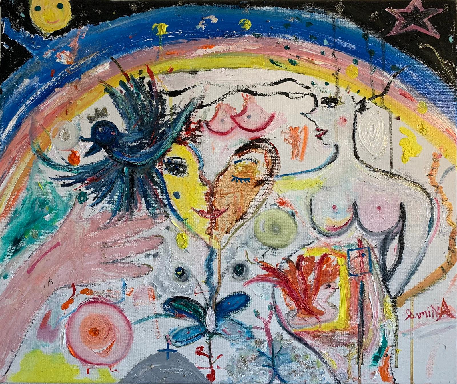 « Puisant son inspiration dans son subconscient, l’artiste raconte des histoires, des mythes, dans une esthétique naïve et enfantine contrastant avec la complexité des sujets traités. Envisageant la peinture comme une démarche psychanalytique, elle oscille entre figuration et abstraction et nous délivre une oeuvre très personnelle, à mi-chemin entre expressionnisme et symbolisme. » Lumina Wang, artiste-plasticienne et comédienne d’origine taïwanaise. Passionnée par les arts dramatiques et la mythologie, son univers singulier est retracé par des signes symboliques et une intrigue d’art dramatique. Il existe notamment une ambiguïté ludique dans ses peintures : un langage naïf voulu pour traiter des sujets complexes et psychologiques, comme les secrets familiaux, la nostalgie ou les traumatismes d’enfance, la féminité cachée ou assumée, l’interaction relationnelle, la passion et toutes les formes d’amour et de sexualité. Riche en métaphores et en sensualité, chaque peinture de Lumina Wang représente une histoire ou un mythe nouvellement créé. De manière libérée et intuitive, elle peint en suivant son inconscient et son animalité, même si, à partir d’un certain moment, elle arrive à y analyser ses choix esthétiques, comme la nature des couleurs utilisées ou les personnages représentés, jusqu’à relier tous ces éléments immergés et enfin décrire une histoire concrète.
