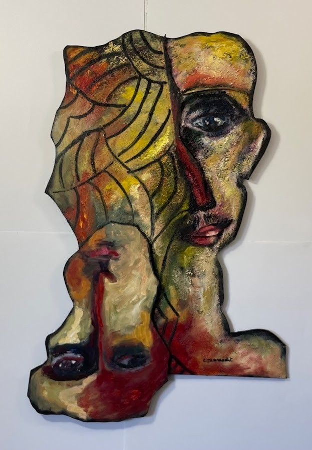 Bois découpé collé peint à l'huile et matière Sculpture Murale avec accroche au dos