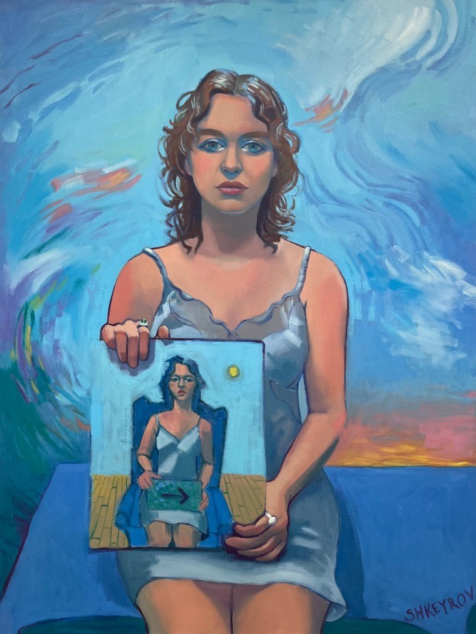 Rebecca Shkeyrov (b. 1997, Fairfax, Virginia, USA) is an American painter of Korean and Ukrainian heritage who now lives and works in Paris, France, where she is currently artist-in-residence at Le 100 Espace Créatif. She holds a BFA from William & Mary. Her work has been shown in cities across the United States and is held in private collections internationally. She is represented by the Linda Matney Gallery in Williamsburg, Virginia.